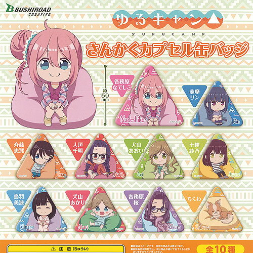 | ゆるキャン さんかく カプセル 缶バッジ 全10種+ディスプレイ台紙セット ブシロード ガチャポン ガチャガチャ コンプリート